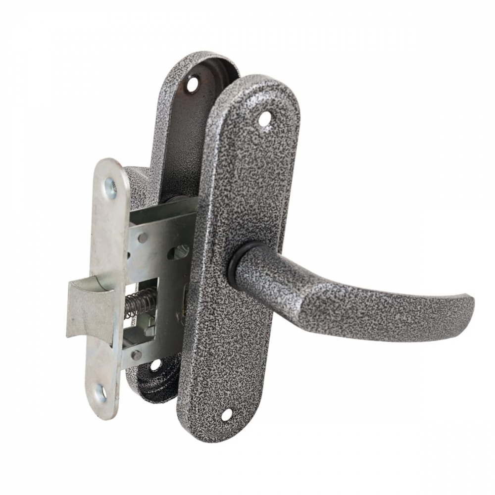 Защелка врезная с ручками. Предназначена для установки в деревянные двери толщиной до 45мм, правого и левого открывания. Универсальная защелка. Стальной корпус, покрыт гальваническим покрытием. Удаление ключевого отверстия 45мм. Материал ручек алюминиевый сплав. Комплектация: защелка, ручки, ответная планка, шурупы.